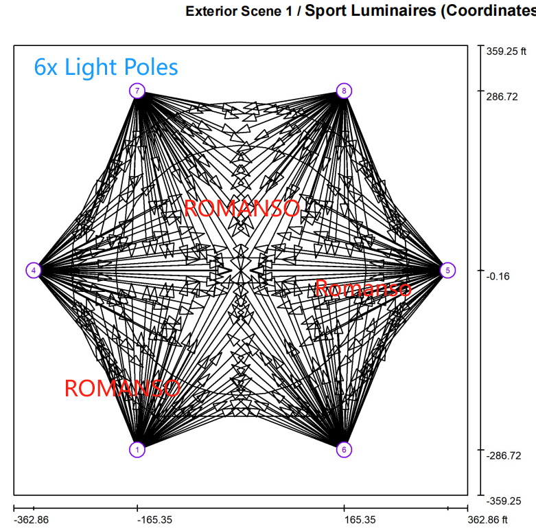 Vertical and Horizontal Illuminance: Proper vertical illuminance on the players’ positions is necessary for TV broadcasting clarity.
