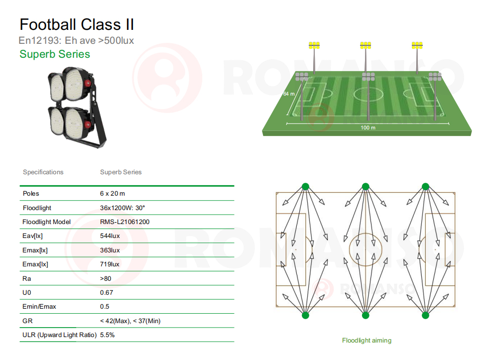 In summary, if you are planning to take the LED sports light for your nice sports field, and want to achieve outstanding lighting effects and meet the requirements of your local government, then Romanso is your best choice. We have finished the international levels of the sports lighting projects for FIFA, UEFA, Olympic games, etc, worldwide for over 10 years. We can help you design a right lighting project based on your needs and budget easily.